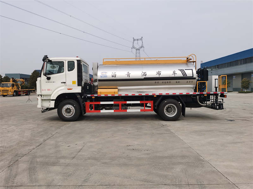 四、其他說明: 智能型瀝青灑布車是一種專業灑布乳化瀝青、稀釋瀝青、熱瀝青、高粘度改性等瀝青的半智能科技產品。用于修筑高等級公路瀝青路面 底層的透層油、防水層、粘結層的灑布。該灑布車由汽車底盤、瀝青罐體、瀝青泵送及噴灑系統、液壓系統、燃燒及導熱油加熱系統、控 制系統、氣動系統、操作平臺構成。該車操作簡便,在吸收國內外同類產品各項技術的基礎上,增加了確保施工的質量技術含量和突出改 善施工條件、施工環境的人性化設計。